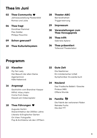 5KlassikerMy Fair LadyDer Besuch der alten DameAgamemnonK%u00e1%u0165a Kabanov%u00e1Thea im JuniTheater-ABCBarrierefreiheitTriggerwarnungImpressumVeranstaltungen zum Thea VorzugspreisThea trifftGabriele AplenzThea pr%u00e4sentiertTollwood Theaterlabor2829303536Thea CommunityJahresausstellung MaskenbildRomeo und JuliaThea fragtDorothee MammelMax ZeidlerPhilipp MoschitzSchon gewusst?Thea KulturleitsystemProgramm18Thea F%u00fchrungenAuguste Herbin Stararchitektur der 2000er-JahreLiteratur & Englischer GartenOn View. FotografiePop & Architektur ab den 1970ernAngesagtGschichtn vom Brandner KasparMPhil: Hilary Hahn Come from AwayKlassik am Odeonsplatz24NeulandDas Triadische Ballett / GoeckeProteus 2481Offene Wunde22Gute ZeitDie Nash%u00f6rnerEin m%u00f6rderischer UnfallSymphoniker: Es werde bunt26FamilieDie Fabrik der verlorenen F%u00e4denReineke FuchsDie drei ??? 020609101216